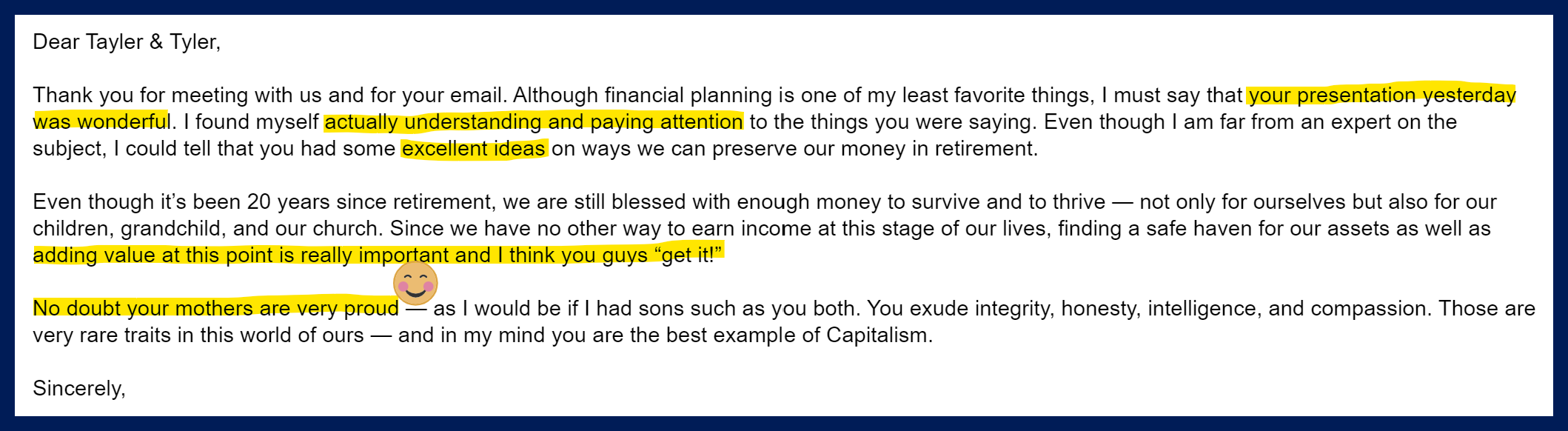 Here's an ACTUAL email from one of the more difficult "NO's" we received last year ($5MM+ prospect):